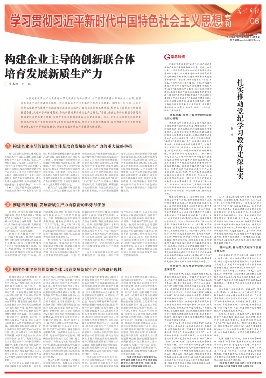 亚澳商学院霍春辉教授与何地老师合作撰写的文章“构建企业主导的创新联合体 培育发展新质生产力”在《光明日报》2024年7月8日06版学习贯彻习近平新时代中国特色社会主义思想专刊发表,并于7月9日光明网光明理论头条版转载刊登。